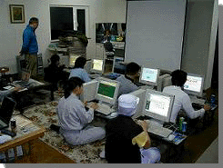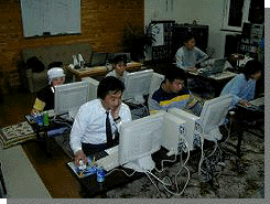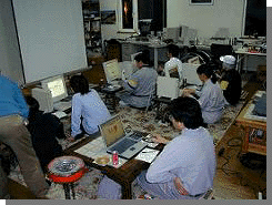 真剣にモニターをにらみつけます。 HPの出来は、想像力と感性です。 一同・・・・・納得しました(爆) |